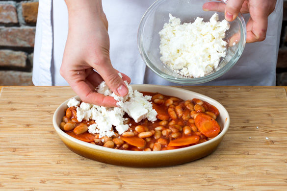 Was ist an grauen, schmuddeligen Tagen noch besser als ein herzhafter, wärmender Eintopf? Richtig: ein Eintopf, der mit cremigem Fetakäse überbacken ist! Eine feine Chili-con-Carne-Gewürzmischung bringt eine wohlige Schärfe an das Gericht aus Karotten und bunten Bohnen, das du mit knusprigem Baguettebrötchen wunderbar auftunken kannst.