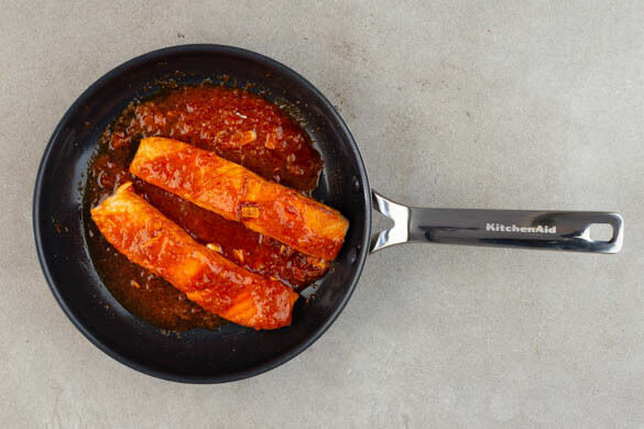 Den Fisch mit kaltem Wasser abspülen, trocken tupfen und evtl. vorhandene Gräten und Schuppen entfernen. 1EL Olivenöl bei mittlerer bis starker Hitze in der Pfanne erwärmen, dann den Fisch mit der Hautseite nach unten hineingeben und 3–5Min. braten. Vorsichtig wenden und 1–2Min. weiterbraten.