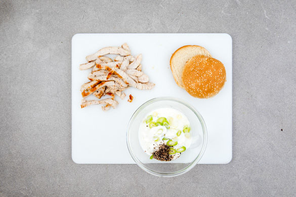 Den Joghurt mit den restlichen Lauchzwiebeln verrühren und mit Salz und Pfeffer würzen. Die Brötchen aufschneiden und ca. 1–2Min. im Ofen aufbacken. Das Fleisch in dünne Streifen schneiden und mit der Salsa nach Geschmack auf den Brötchen verteilen. Die Putenburger mit den Ofenkartoffeln und dem Joghurtdip servieren.