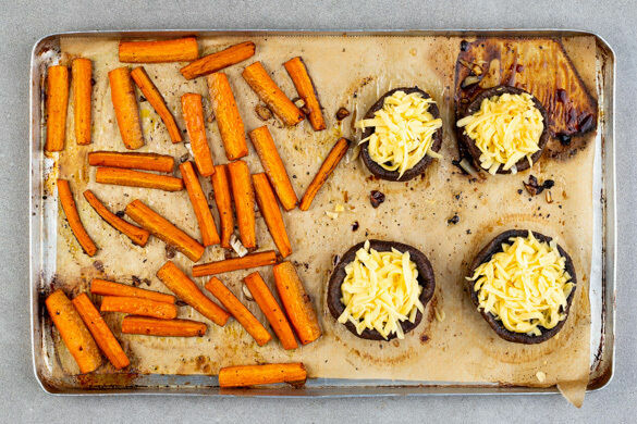 Heute gibt es ein Gericht, das leicht gemacht und leicht im Bauch ist. Die Kombination aus saftigen Portobello-Pilzen, die mit mildem Gouda gefüllt und im Ofen gegart werden, den feinen gebackenen Karotten, einem knackig-frischen Salat mit zitroniger Vinaigrette und knusprig gerösteten Kürbiskernen samt Spiegelei „on top“ lässt sich hervorragend und ganz ohne schlechtes Gewissen verspeisen. Guten Appetit!