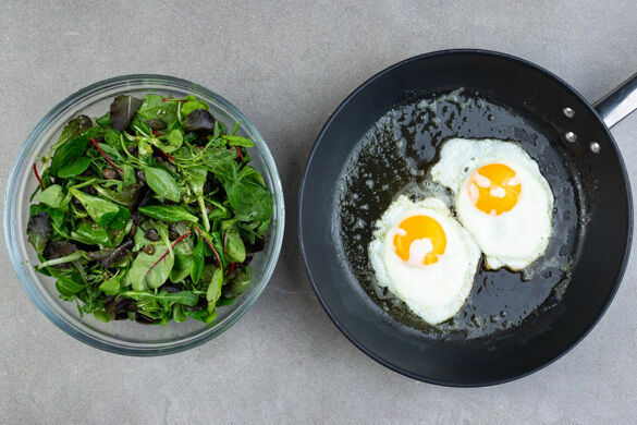 In der Pfanne 1EL Olivenöl mittelhoch erhitzen. Die Eier aufbrechen, in die Pfanne gleiten lassen und 3–4Min. braten. Mit Salz und Pfeffer würzen. Den Salat mit dem Dressing und den Kürbiskernen vermengen und mit den Karotten und Pilzen auf Teller verteilen. Die Eier auf den Pilzen anrichten und mit der Petersilie garniert servieren.