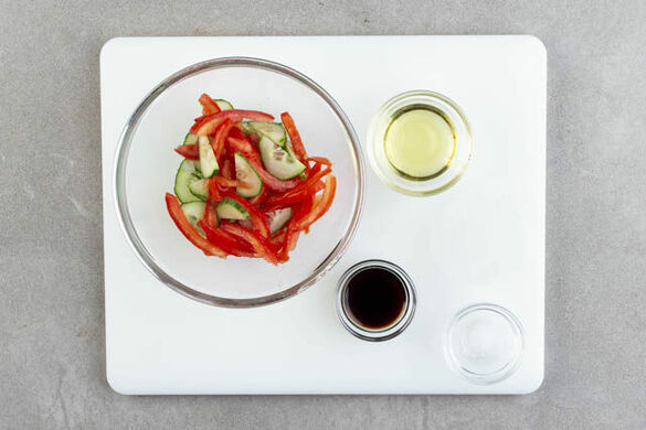1EL Olivenöl, 1EL Balsamicoessig sowie je 1 Prise Salz und Pfeffer zu einem Dressing verrühren. Die Gurke längs halbieren und quer in dünne Scheiben schneiden. Die Tomate in dünne Spalten schneiden und mit den Gurken und dem Dressing vermengen. Mit Salz und Pfeffer abschmecken.