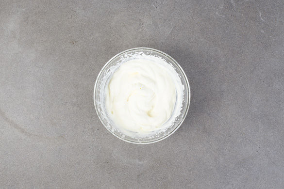 Die Sahne mit dem Vanillezucker in einem hohen Gefäß steif schlagen.