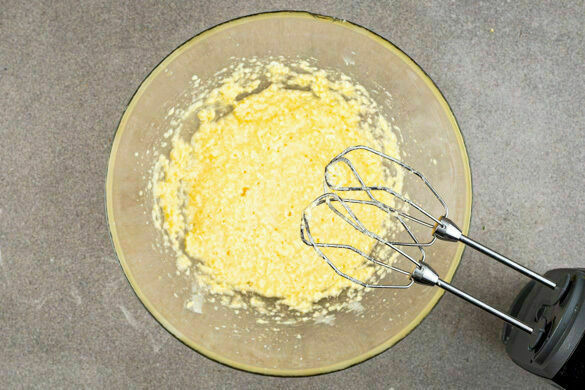 Den Backofen auf 200°C (180°C Umluft) vorheizen. Die Walnüsse grob hacken. 140g Zucker, 125g Butter und ½TL Salz mit einem Handrührgerät zu einer cremigen Masse verrühren. Die Eier ca. 30Sek. unterrühren. Tipp: Die Konsistenz der Masse sollte der von Kuchenteig ähneln.