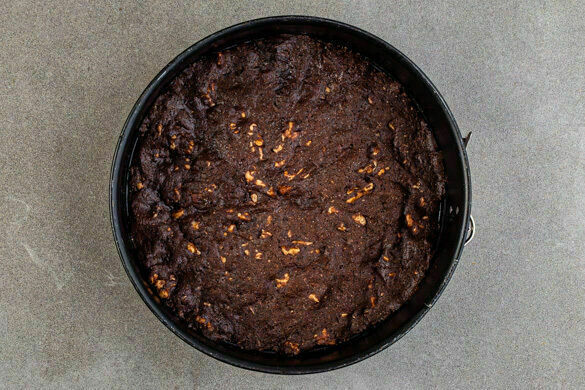 Das Mehl, 1TL Backpulver, das Kakaopulver und die Walnüsse unter die vorbereite Masse heben und mit dem Handrührgerät ca. 30Sek. vermengen.