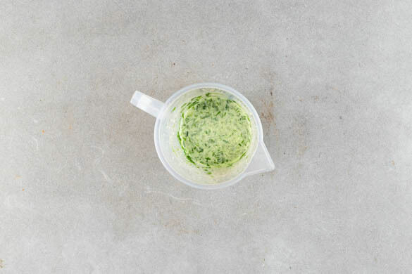 Den Schnittlauch und die Petersilie samt Stängeln grob schneiden. Die Zitrone halbieren und auspressen. Die ½ der Kräuter mit 2EL Wasser, 1–2EL Zitronensaft, 1EL Olivenöl, 1TL Honig und 1 kräftigen Prise Salz in einem hohen Gefäß fein pürieren.