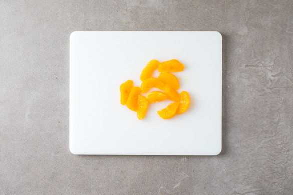 Die Orangenschale abreiben, dann die Orange filetieren: Dafür mit einem scharfen Messer die restliche Schale mit der weißen Haut wegschneiden und die einzelnen Filets zwischen den Fruchtwänden herausschneiden, dabei den Saft auffangen. Den Saft mit 1EL Öl, 1–2TL Essig, dem Knoblauch, der 1/2 der Minze und Orangenschale nach Geschmack verrühren.