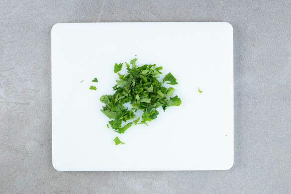 Den Koriander samt Stängeln grob schneiden. Die Enchiladas mit dem Koriander und ggf. übrigen Chiliringen garnieren und servieren.