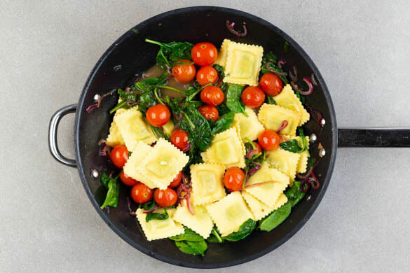 Ravioli haben mit ihrer feincremigen Füllung großes Potenzial unsere absolute Lieblingspasta zu werden. Obwohl, eigentlich wollen wir uns da auch gar nicht festlegen. Dieses Pastagericht ist jedenfalls unglaublich lecker und überzeugt mit fruchtigen Tomaten und aromatischem Spinat. Dazu bereiten wir eine Kürbiskerngremolata zu, die anstelle der klassischen Petersilie diesmal zartwürziges Basilikum enthält.