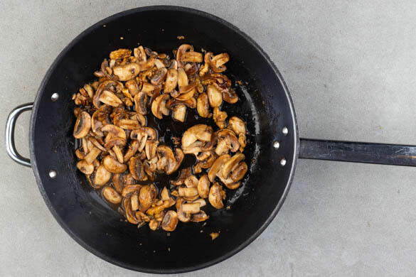 Den Knoblauch schälen und sehr fein würfeln oder durch eine Knoblauchpresse drücken. Die Pilze ggf. säubern und in Scheiben schneiden.