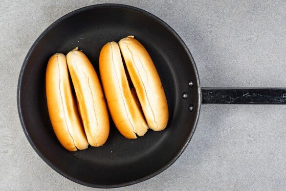 Die Brötchen aufschneiden, mit der Schnittfläche nach unten in die leere Pfanne legen und 1–2Min. erwärmen. Die Brötchen mit den Würsten und dem Paprikarelish nach Belieben füllen. Die Hotdogs mit dem restlichen Paprikarelish und dem gebratenen Mais auf Teller verteilen. Den Mais mit dem restlichen Feta garnieren und servieren.