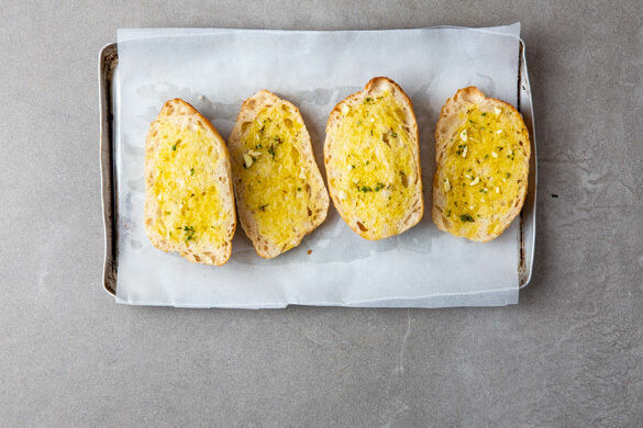 Im Mittelmeerraum werden über 1.000 Sorten von Olivenbäumen angebaut, denn dank ihres würzigen Geschmacks ist und bleibt die Steinfrucht eine beliebte Zutat in den Küchen der Welt. Und so findest du sie auch heute in unserem kräftig-mediterranen Salat, der die gebackenen Hähnchenkeulen fabelhaft komplementiert. Dazu gibt es leckeres, knuspriges Knoblauchbaguette. Lass es dir schmecken!