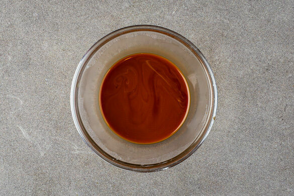 Inzwischen die Maisstärke mit der Sojasauce, 2EL Essig (z. B. Reisessig) und 3TL Zucker verrühren.