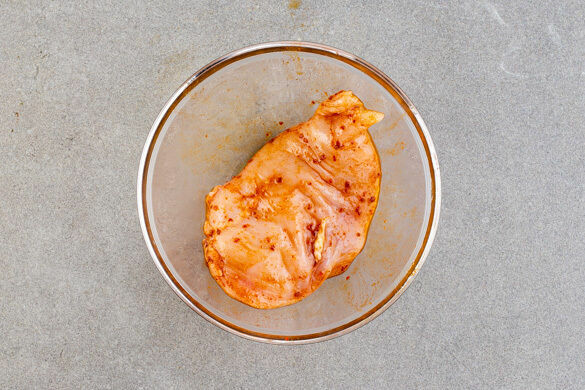Den Backofen auf 220°C (200°C Umluft) vorheizen. Das Fleisch trocken tupfen und rundum mit 1EL Olivenöl und der ½ der Gewürzmischung einreiben.