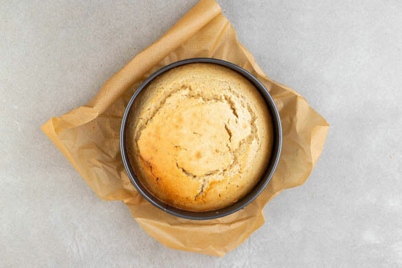 Den Backofen auf 180°C (160°C Umluft) vorheizen. Den Boden einer Springform (20–22cm Ø) mit Backpapier auslegen, die Seiten mit 1TL weicher Butter einfetten. Das Mehl mit der ½ des Backpulvers und 1 kräftigen Prise Salz vermengen. Mit einem Schneebesen das Tahini mit 100ml Pflanzenöl glatt rühren.