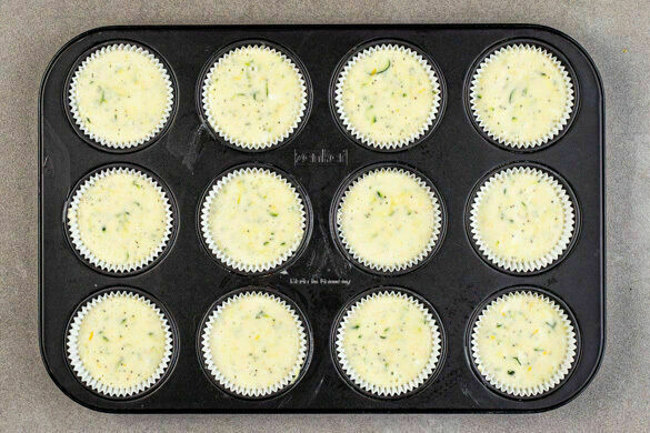 Den Backofen auf 190°C (170°C Umluft) vorheizen. Die Zucchini grob raspeln und über einem Sieb möglichst viel Flüssigkeit herausdrücken, dann die Zucchiniraspel abtropfen lassen. Die Muffinförmchen in den Muffin-Backformen verteilen. Tipp: Wer kleinere Muffinformen hat, backt in mehreren Vorgängen und hält den Teig im Kühlschrank kühl.