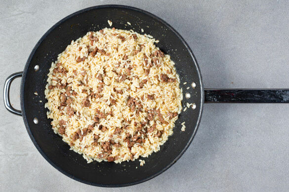 Erwecke den Gourmetkoch in dir und überrasche dich und deine Fans mit einem besonders raffinierten Rezept! Die Portobello-Pilze füllst du ganz elegant mit einem Risotto, dessen exquisites Aroma durch feine Stückchen gebratener Rindswurst und Trüffelöl abgerundet wird. Was könnte diese Komposition noch toppen? Richtig, du überbackst die Pilze im Ofen mit flockigen Panko-Krumen und schmelzendem Käse. Mmmmmh!
