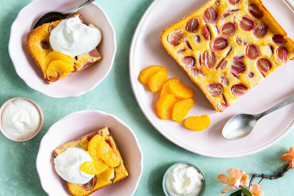 Heute liefern wir dir alles, was du für einen leckeren Trauben-Clafoutis brauchst: Der französische Kuchen mit dem fluffigen Teig macht sich wunderbar zu Schlagsahne und erfrischenden Orangenfilets. Nun liegt es an dir: Immer schön den Teller leer essen, dann klappt’s auch mit dem Wetter dazu!