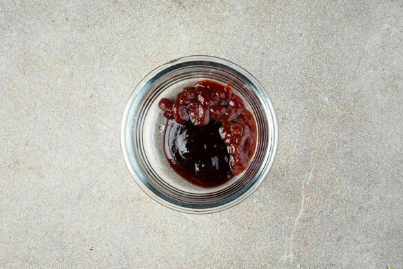 Das Fleisch trocken tupfen und jeweils horizontal zu 2 dünneren Filets halbieren. 2EL Olivenöl, 2EL hellen Essig, die 1/2 der BBQ-Sauce sowie je 1 Prise Salz und Pfeffer zu einer Würzsauce vermengen und das Fleisch damit einreiben.