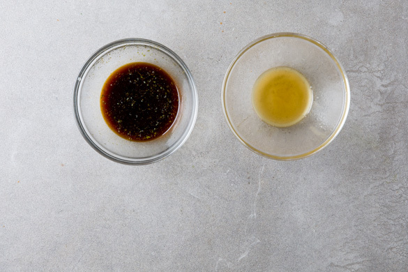 Die Limettenschale abreiben, dann die Limette halbieren und auspressen. Den Limettensaft und die -schale mit der Sojasauce und 1–2TL Zucker verrühren. Aus je 2EL Pflanzenöl, Essig und Wasser sowie je 1 Prise Salz und Zucker ein Dressing anrühren und kurz vor dem Servieren mit dem Salat und der Gurke vermengen.