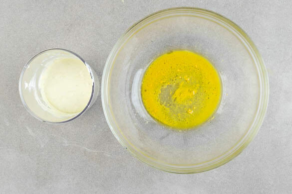 Den Jalapeño-Mix, die Crème fraîche, 1TL hellen Essig sowie je 1 kräftige Prise Salz und Pfeffer in ein hohes Gefäß geben und mit einem Stabmixer zu einem cremigen Dressing pürieren. Ggf. 1–2EL Wasser unterrühren, bis die gewünschte Konsistenz erreicht ist. In einer Schüssel 1EL Olivenöl, 1EL hellen Essig und 1TL Senf zu einer Vinaigrette verrühren.
