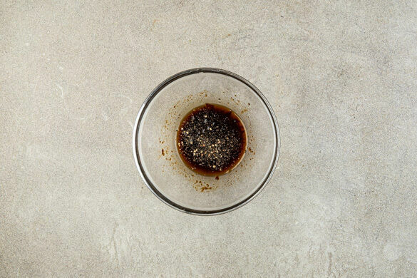 Die Zwiebelmarmelade mit 2TL Essig und 2TL Wasser verrühren und mit reichlich Pfeffer abschmecken. Die Bratlinge mit dem Salat anrichten und mit der Zwiebelmarmelade beträufelt servieren.