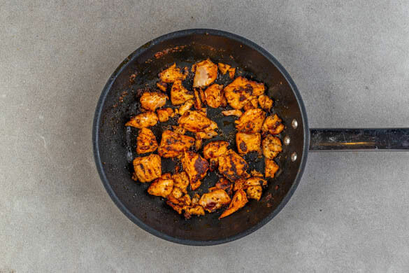 Den Fisch kalt abspülen, trocken tupfen, evtl. vorhandene Gräten und Schuppen entfernen. In einer großen Pfanne 1EL Pflanzenöl stark erhitzen. Den Fisch ins heiße Öl geben, mit einem Pfannenwender leicht zusammenpressen und ohne Rühren ca. 3Min. braten. Wenden, die restliche Gewürzmischung und 1 kräftige Prise Salz zugeben. Erneut zusammendrücken, zerkleinern und 2–3Min. weiterbraten.