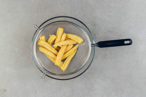 Den Babymais in ein Sieb abgießen.