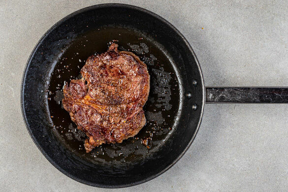 Stilvoll und durchaus ein wenig luxuriös geht es an deinem Tisch zu: Das Entrecôte ist nämlich ein ganz besonders schmackhaftes und zartes Steak. Heute sitzt es auf geröstetem Karottenpüree und wird mit knusprigen Walnüssen und Topinambur serviert, der übrigens auch als Jerusalem-Artischocke bekannt ist. Eine edle, winterliche Sauce aus Orangen, Cranberrys sowie Schalotten lässt Feinschmeckerherzen höherschlagen.