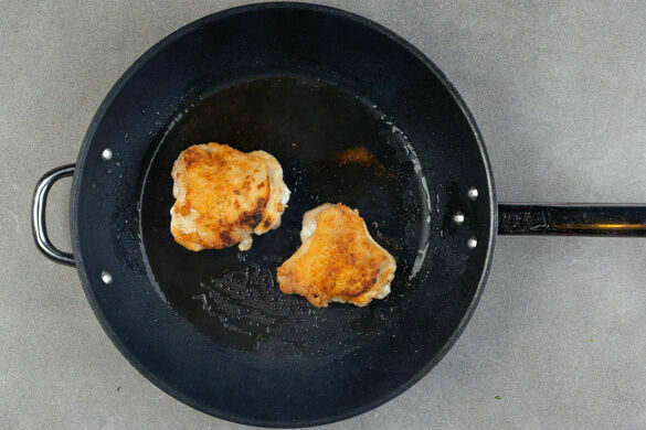 Das Fleisch trocken tupfen, mit je 1TL Salz und Pfeffer sowie 2EL Mehl einreiben. In einer großen Pfanne 2EL Pflanzenöl bei starker Hitze erwärmen. Das Fleisch hineingeben, sobald das Öl sehr heiß ist und auf jeder Seite 1–2Min. goldbraun anbraten.