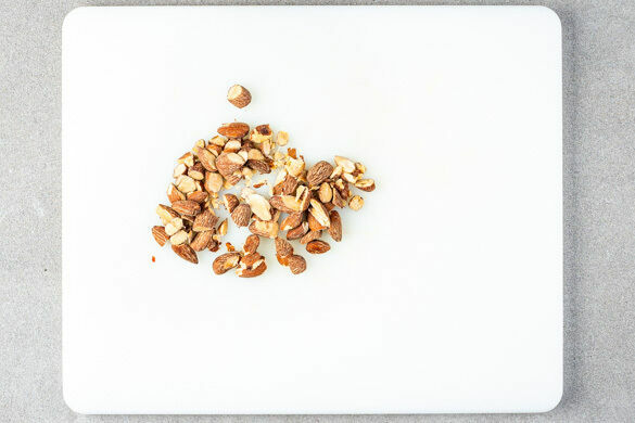 Das Rote-Bete-Püree auf Teller verteilen, dann den Salat und die Salsiccia darauf anrichten. Den Mozzarella mit den Händen grob zerteilen, auf dem Salat verteilen und mit dem restlichen Dressing beträufeln. Mit den Rauchmandeln garnieren und servieren.
