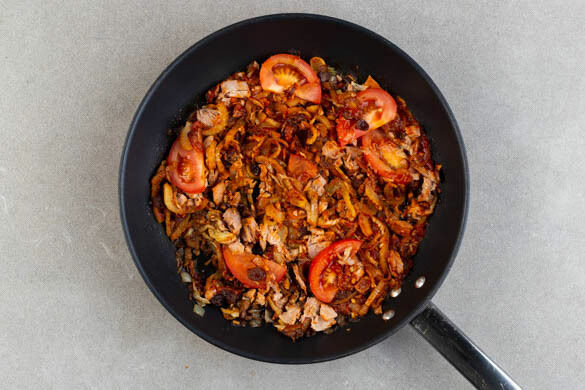 Den Knoblauch, die Aprikosen und das Tomatenmark in die Pfanne rühren und bei mittlerer Hitze ca. 2Min. mitbraten. Den Thunfisch abgießen und mit den Tomatenspalten und 300ml Pastawasser hinzufügen. Die Sauce ca. 2Min. unter Rühren erhitzen, bis sie leicht eingedickt ist.