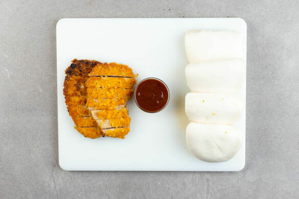 Die übrige Teriyakisauce mit 2EL Ketchup, 2TL Senf und 2TL Wasser zu einer Sauce verrühren. Die Schnitzel in Streifen schneiden. Die Hefebrötchen vorsichtig aufklappen, mit dem Karottensalat und den Schnitzelstreifen füllen und anschließend mit der Sauce beträufeln. Die Baos auf Teller verteilen und mit dem Auberginengemüse servieren.