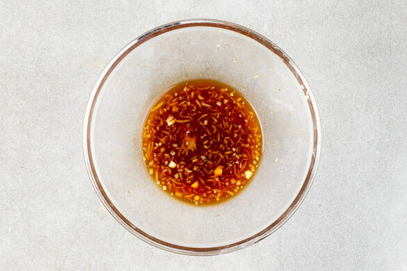 Das Fleisch in einer großen Pfanne mit 2EL Pflanzenöl bei starker Hitze auf jeder Seite 3–4Min. anbraten, bis es goldbraun und knusprig ist. In der letzten Minute die Würzsauce dazugeben und das Fleisch vollständig damit bedecken. Das Fleisch auf einem Teller beiseitestellen, die Pfanne auswischen und aufbewahren.