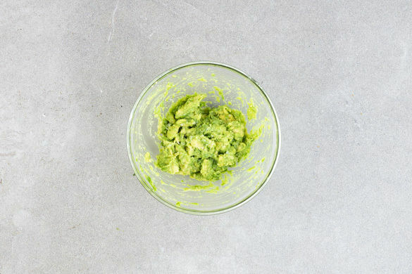 Die Limette halbieren und eine Hälfte auspressen, die andere Hälfte in Spalten schneiden. Die Guacamole mit 1–2TL Limettensaft sowie je 1 Prise Salz und Pfeffer abschmecken.