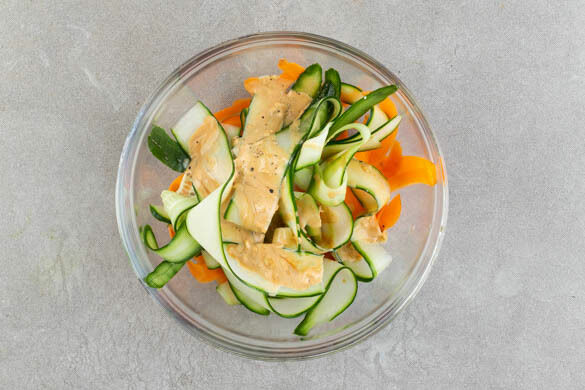 Die BBQ-Sauce mit der ½ der Sojasauce, 1TL Honig, 1TL Mehl, 1EL Wasser und 1 Prise Pfeffer zu einer Würzsauce verrühren. Den Knoblauch schälen, fein würfeln und mit der restlichen Sojasauce, 1EL Mayonnaise und 1 Prise Pfeffer zu einem Dressing verrühren.