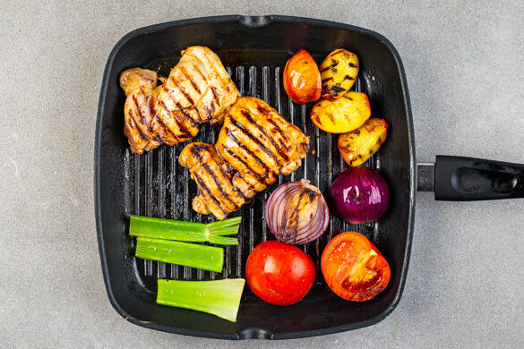 Wusstest du, dass der rauchige Geschmack von Grillfleisch wahnsinnig gut mit fruchtigen Aromen harmoniert? Heute kannst du es selbst ausprobieren, wenn du das saftige Hähnchenschenkelfilet in würziger Marinade grillst und es dann mit einer BBQ-Sauce aus gegrillten Nektarinen, Tomaten und Zwiebeln paarst. Dazu servierst du Babykartoffeln mit Stangensellerie, frischen Gurken und Basilikum, – so wird der Grillabend perfekt!