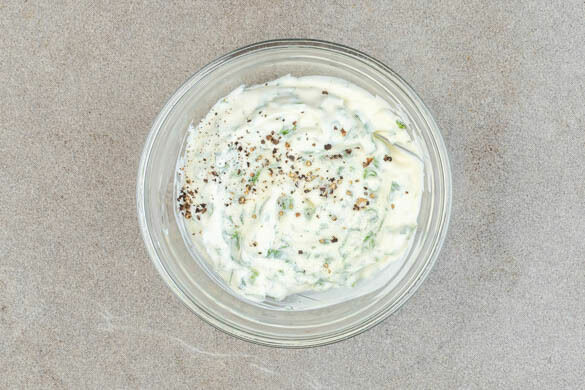 Die Crème fraîche mit der ½ der Korianderblätter und der ½ der grünen Lauchzwiebelringe verrühren und den Dip mit Salz und Pfeffer abschmecken. Die Enchiladas mit dem übrigen Koriander und den übrigen Lauchzwiebeln garnieren und mit dem Dip servieren.