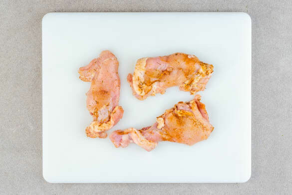 Das Fleisch zum Kürbis auf die Backbleche geben. Den Kürbis und das Fleisch 18–22Min. im Ofen backen, bis der Kürbis weich und das Fleisch leicht knusprig und durchgegart ist. Die Garzeit kann je nach Dicke des Fleisches variieren. Die Position der Bleche nach der Hälfte der Zeit tauschen.