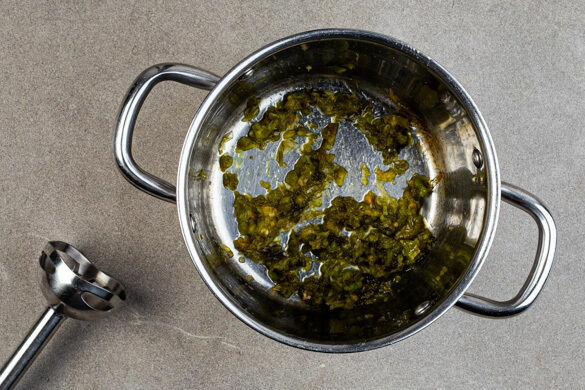 Die ½ der grünen Paprika, die Chili und die Lauchzwiebeln in einen kleinen Topf geben und mit 2EL Essig, 6EL Wasser, 3EL Zucker und 1 kräftigen Prise Salz bei mittlerer Hitze in 12–15Min. weich kochen. Das Gemüse mit einem Stabmixer fein pürieren und ggf. etwas Wasser hinzufügen, falls die Jalapeñokonfitüre zu dickflüssig ist. Mit Salz abschmecken.