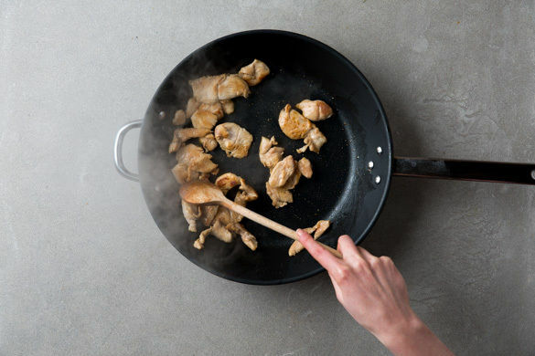 Das Fleisch in einer großen Pfanne bei starker Hitze 2–3Min. scharf anbraten und nach Belieben mit Salz und Pfeffer würzen. Aus der Pfanne nehmen und auf einem Teller beiseitestellen.
