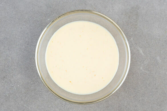 Den Ricotta mit den Eiern, 1TL Orangenschale, dem Orangensaft, 3EL Milch, 2EL Zucker und 1 Prise Salz mit einem Schneebesen cremig verrühren.