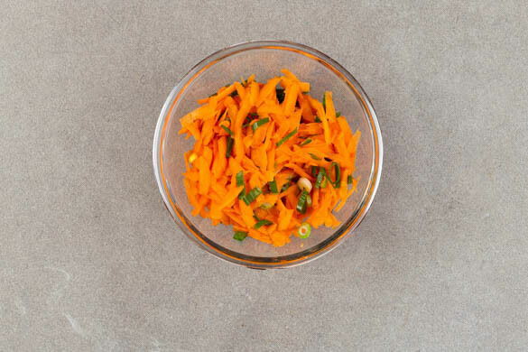 Die Karotten ggf. schälen und mit einer Küchenreibe grob raspeln. Die Lauchzwiebeln in feine Ringe schneiden, dann mit den Karotten, 2EL hellem Essig sowie je 1 kräftigen Prise Salz und Zucker vermengen. Die Eier mit je 1 Prise Salz und Pfeffer würzen und mit dem Pak-Choi-Gemüse, dem Reis und dem Karottensalat servieren.