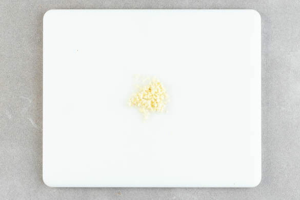 Inzwischen den Knoblauch schälen und grob würfeln.