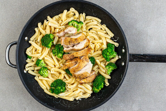 Für diesen schnellen Feierabendliebling senden wir dir saftig-zartes Hähnchenschenkelfilet, das du zu feiner Pasta mit frischem Brokkoli und einer cremigen Sauce servierst. Geräucherte Mandeln sind das knackig-delikate Aroma-Tüpfelchen. Das schmeckt großen und kleinen Leckermäulchen!