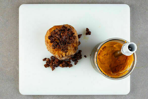 Dieses Winteressen verspricht Behaglichkeit für Leib und Seele. Wie gemütlich doch die Zeit vergeht, wenn du den Knollensellerie liebevoll mit einer köstlichen Mischung aus Blauschimmelkäse, Wal- und Pekannüssen einsalbst und ihn dann ganz geruhsam im Ofen schmorst! Mühelos röstest du Knoblauch und Kürbis gleich mit und verwandelst sie in ein traumhaft cremiges Püree. Mit Salbeisauce beträufelt ein absoluter Traum.