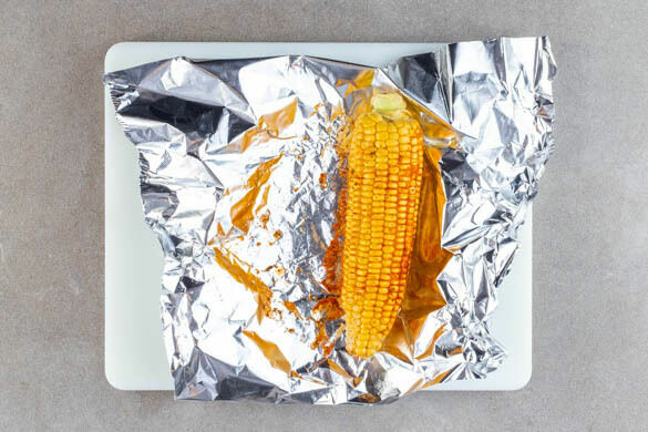 Den Backofen auf 220°C (200°C Umluft) vorheizen. Den Mais ggf. von den Hüllblättern und Fäden befreien und auf einem Stück Alufolie mit ½EL Olivenöl, 1TL Cajun-Gewürzmischung und 1 Prise Salz einreiben. Das Maispäckchen verschließen und in den vorheizenden Ofen geben.