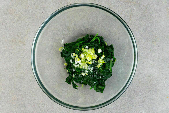 Den Spinat portionsweise ins kochende Wasser geben, dann ca. 30Sek. blanchieren, in ein Sieb abgießen und mit kaltem Wasser abspülen. Abtropfen lassen und das restliche Wasser ausdrücken. Den ausgedrückten Spinat mit den weißen Lauchzwiebeln vermengen, ⅔ des Sesamöls untermischen und den Sesam-Spinat mit Salz und Pfeffer abschmecken.