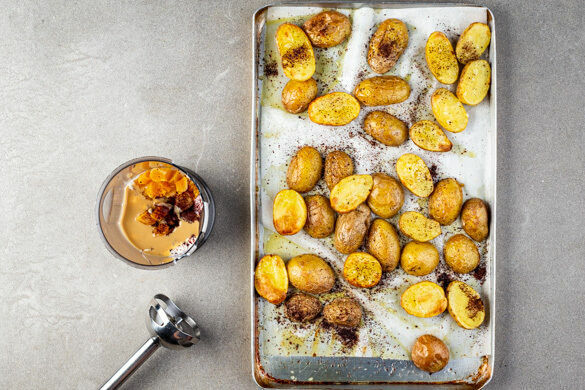 Heute zeigen wir dir, warum die Fusionsküche in aller Munde ist. Denn auf unserem Teller verschmelzen die Geschmackswelten aus dem östlichen Mittelmeerraum mit duftenden Gewürzen Nordafrikas zu einer köstlichen Liaison. Konkret bedeutet das: Aromatische Sumach-Kartoffeln und cremige Aprikosen-Tahini-Sauce treffen auf pikant-würzige Bohnen und goldbraunes Hähnchen. Keine Frage, bei Geschmack gilt: Mehr ist mehr!