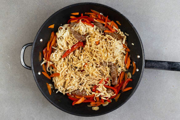 Heute brauchst du einen schnellen Schlemmer-Teller? Mit unserem raffinierten Rezept kochst du ganz fix und ohne viel Tam-Tam ein chinesisch inspiriertes Nudelgericht, das deine Erwartungen nicht nur mit knackiger Paprika und Möhre, sondern auch mit herzhaftem Bio-Rindergeschnetzeltem erfüllt. Gewürzt wird mit einer aromatischen Ingwersauce, die schon griffbereit in deiner Kochbox liegt. Praktisch, nicht?